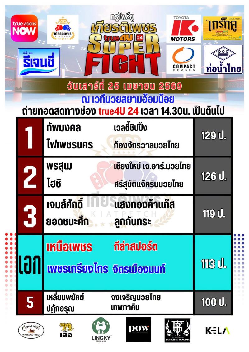 | # ศึกมวยไทยเกียรติเพชร 25/04/2569 |