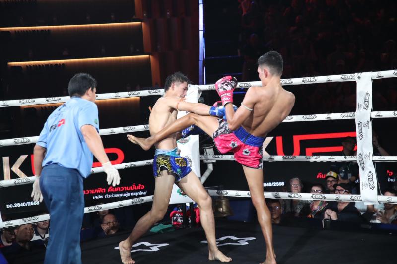| การต่อสู้ | มวยซ้ายเข่าอาชีพขวางหน้าล็อกรัดตีเหนียวแน่นเสียบตลอดปลายแข็งแกร่ง ''หลายชาย นพรัตน์ เกียรติกำธร'' | สูงยาวเข่าแหลมเปิดเกมขวางหน้าเสียบแหลมดุดันโยนเข่าฟันศอกสวนปลายแข็งแกร่งเดินติดๆดี |