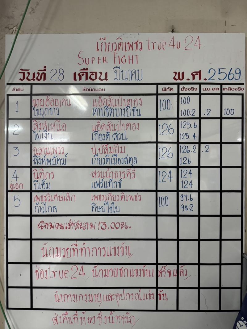 | # ศึกจ้าวมวยไทย 28/03/2569 |